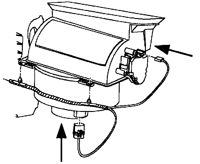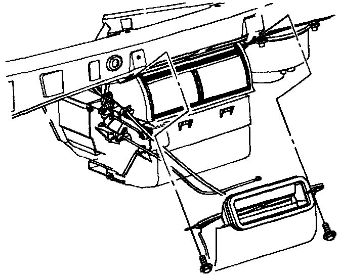 8. Rotate windshield defroster nozzle onto mode valve assembly and install screws. Make sure duct is snapped on both sides of HVAC module.