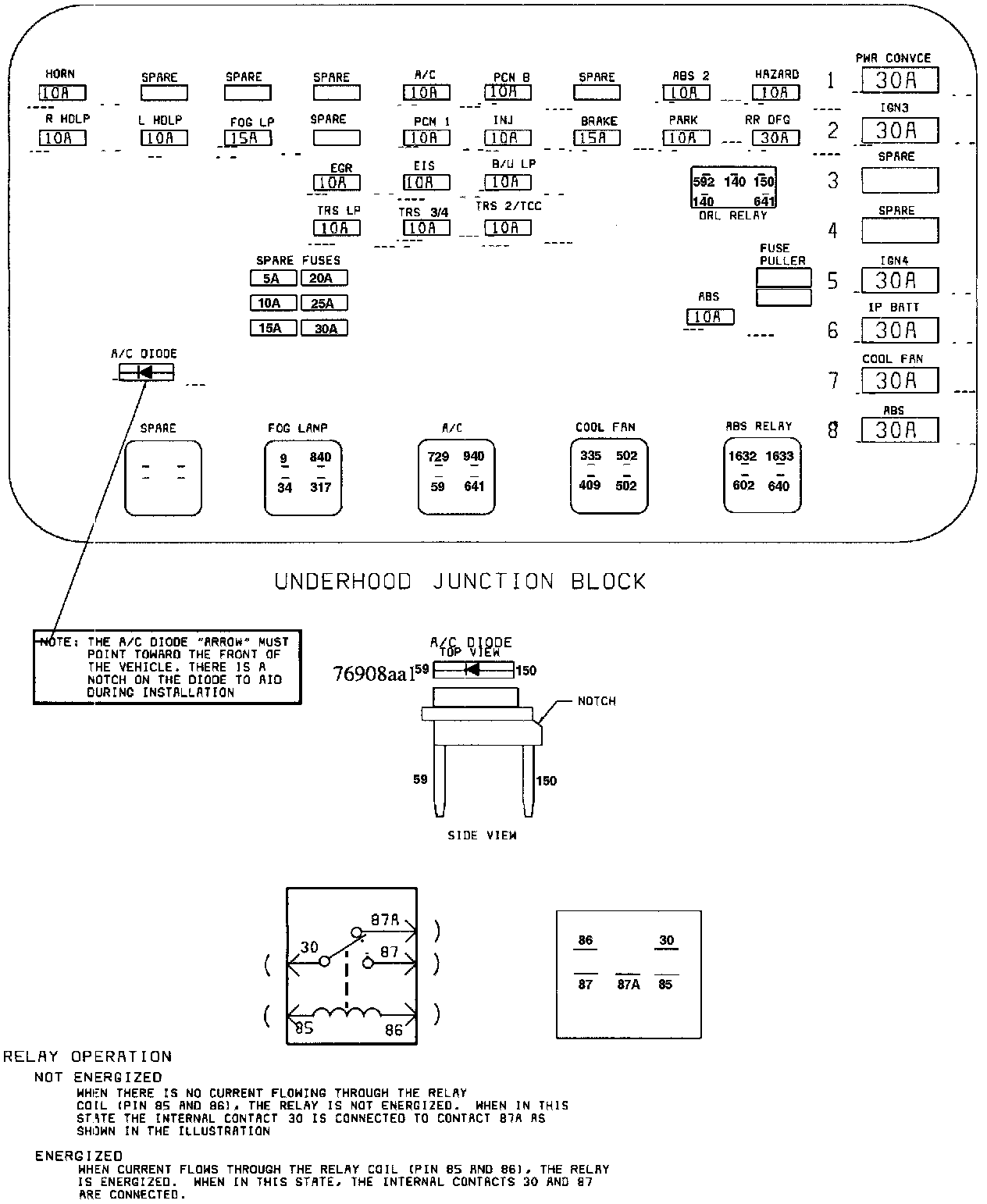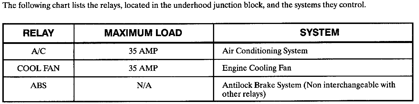 Underhood Junction Block Charts: Relay Circuit Feeds: