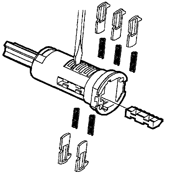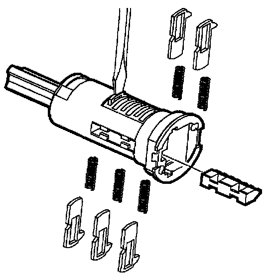 6. Remove key and push tumblers out of lock cylinders using a thin bladed screwdriver.