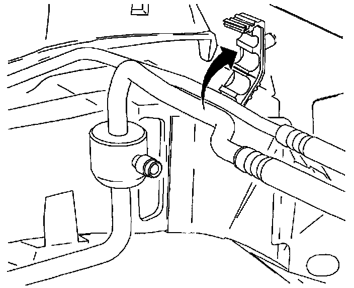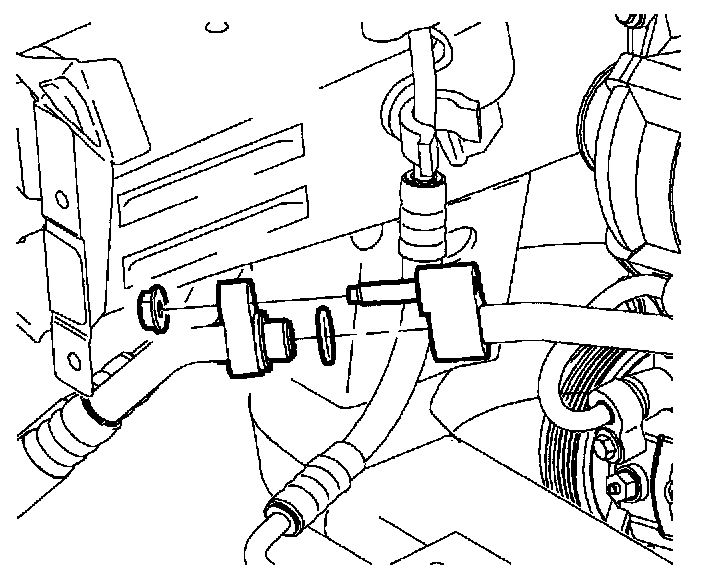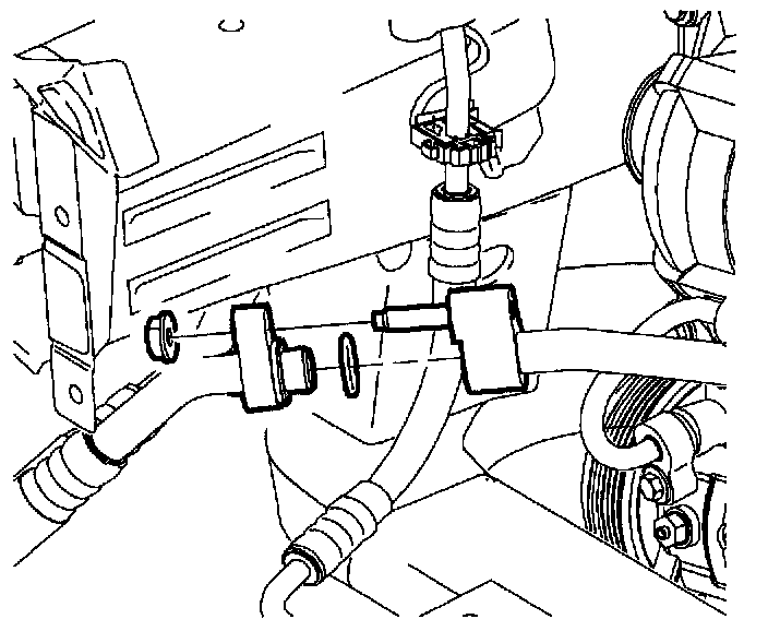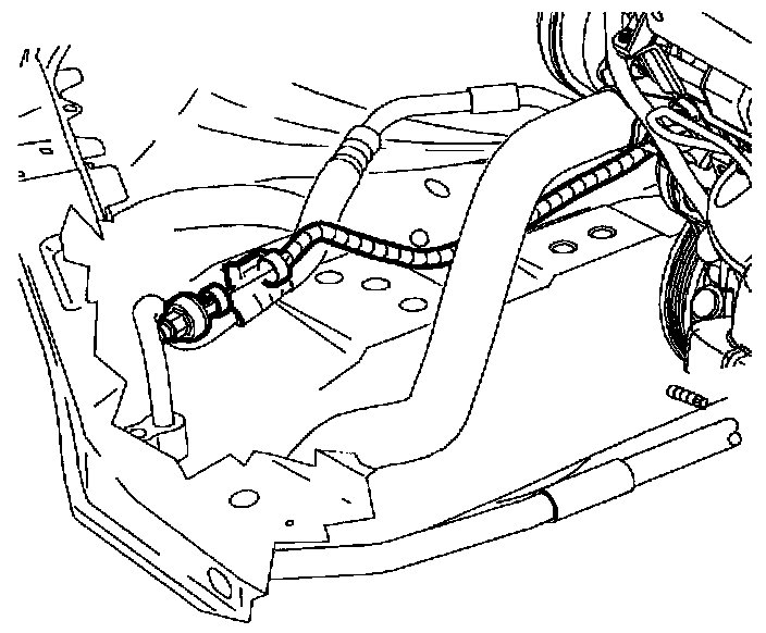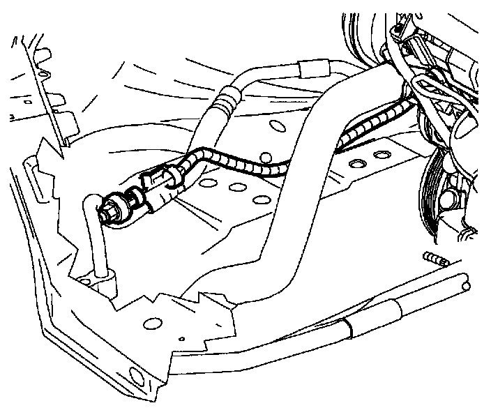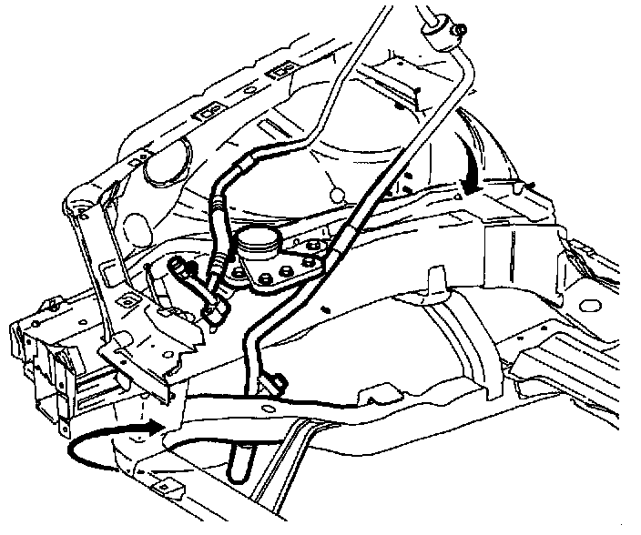 2. Position suction/liquid line assembly into vehicle around engine mount.