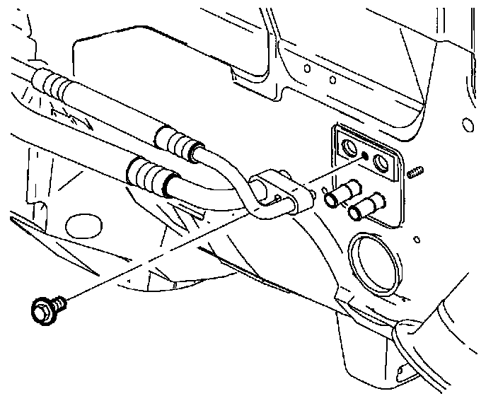 4. Remove suction/liquid line assembly clamp fastener at engine mount area.