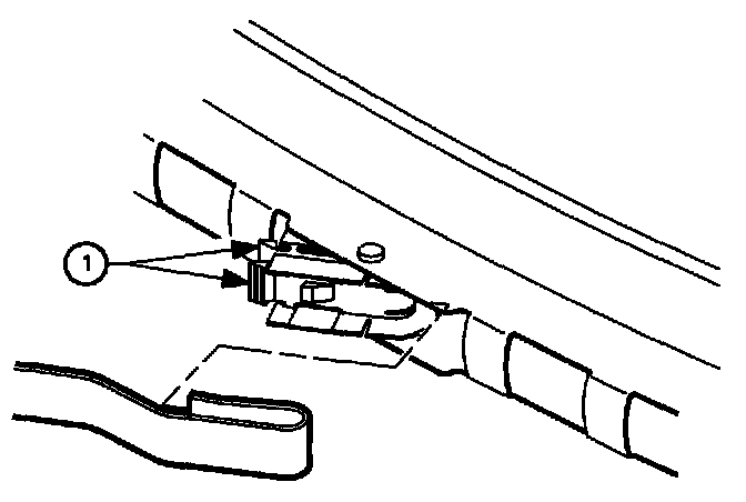 2. Pinch wiper blade attachment clip (1) together and slide blade out of wiper arm hook.