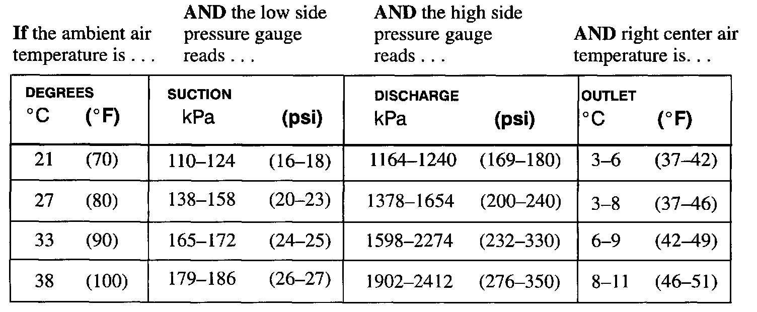 ^ This condition could generate an intermittent cooling complaint along with reduced air flow because of evaporator freeze up at lower ambient air temperatures.