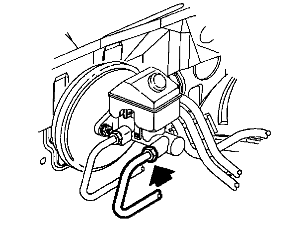 b. Allow brake fluid to flow from front master cylinder port until all air is removed from front master cylinder bore.