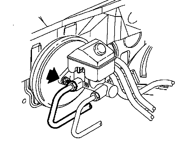 d. Loosen rear brake pipe (rear port) at master cylinder.