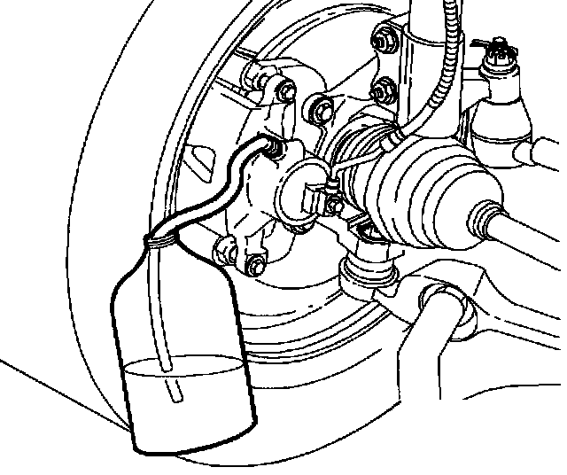 c. Loosen bleeder screw, allow fluid to flow into container until all air is removed.