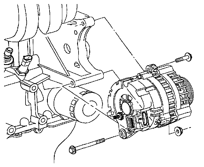 1. Position generator on lower cylinder block bracket and install the lower attachment bolt. Install upper attachment bolt and torque both bolts.