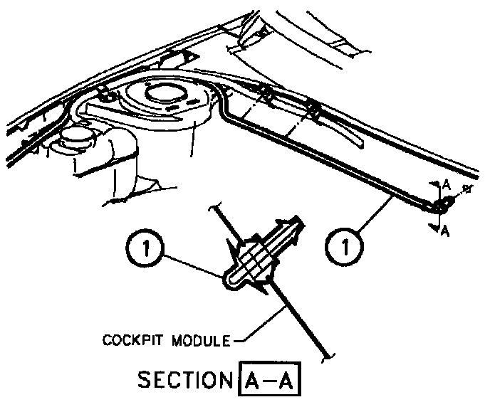 2. Route washer hose using retaining clips around top of strut tower and across front of cowl as shown in illustration.