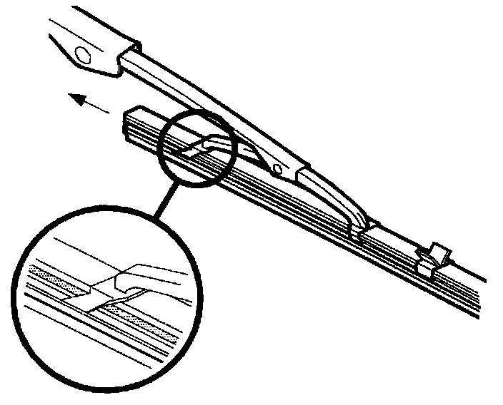 2. Secure the wiper blade insert to the wiper blade by pulling insert so that notches engage into heel claw.