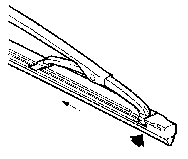 IMPORTANT: Right and left wiper blade inserts are different lengths. Make sure to check that the longer blade insert is installed into the left-hand side.REMOVAL