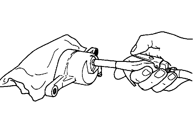 NOTICE: Pad interior of caliper body to provide a protective cushion for piston when it exits the caliper. This will protect piston from surface damage caused from piston/caliper body contact.