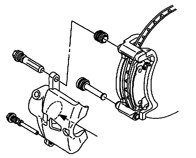 5. Remove caliper from caliper support, being careful not to damage pin boots.