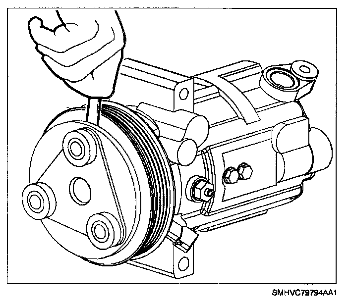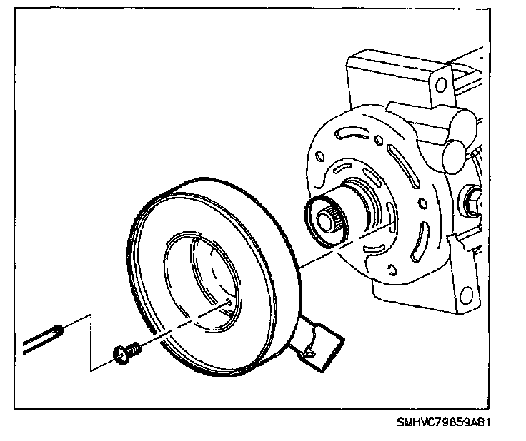 7. Remove A/C compressor clutch coil screws and remove A/C compressor clutch coil.