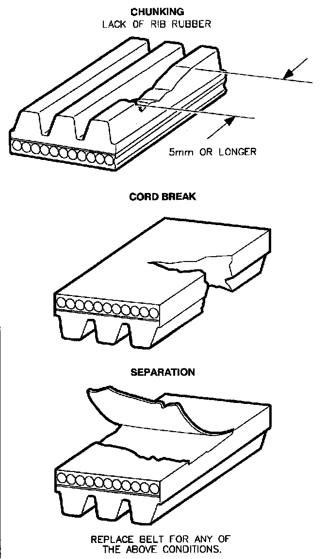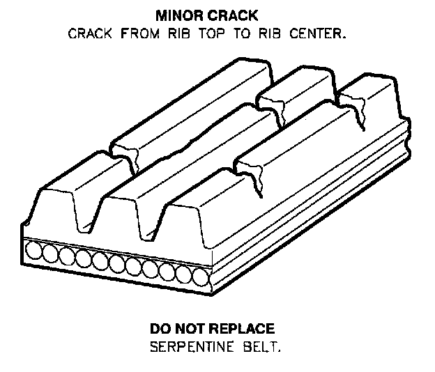 ENGINE DRIVE BELT INSPECTIONMirror cracks in belt rib are normal. They are the result of reverse bending around a backside pulley. Do not replace belts for minor cracks.