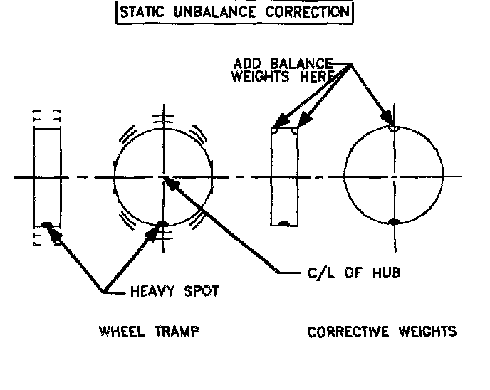 Static balancing ensures an equal distribution of weight around the wheel/tire. Assemblies that are statically unbalanced cause a bouncing action called tramp. This condition may cause vibration on smooth roads at highway speeds resulting in decreased riding comfort to the driver and passengers. In severe conditions, excessive static imbalance can also decrease traction due to loss of tire-to-road contact. Statically imbalanced tires can develop a cupping wear condition if the imbalance is not corrected.