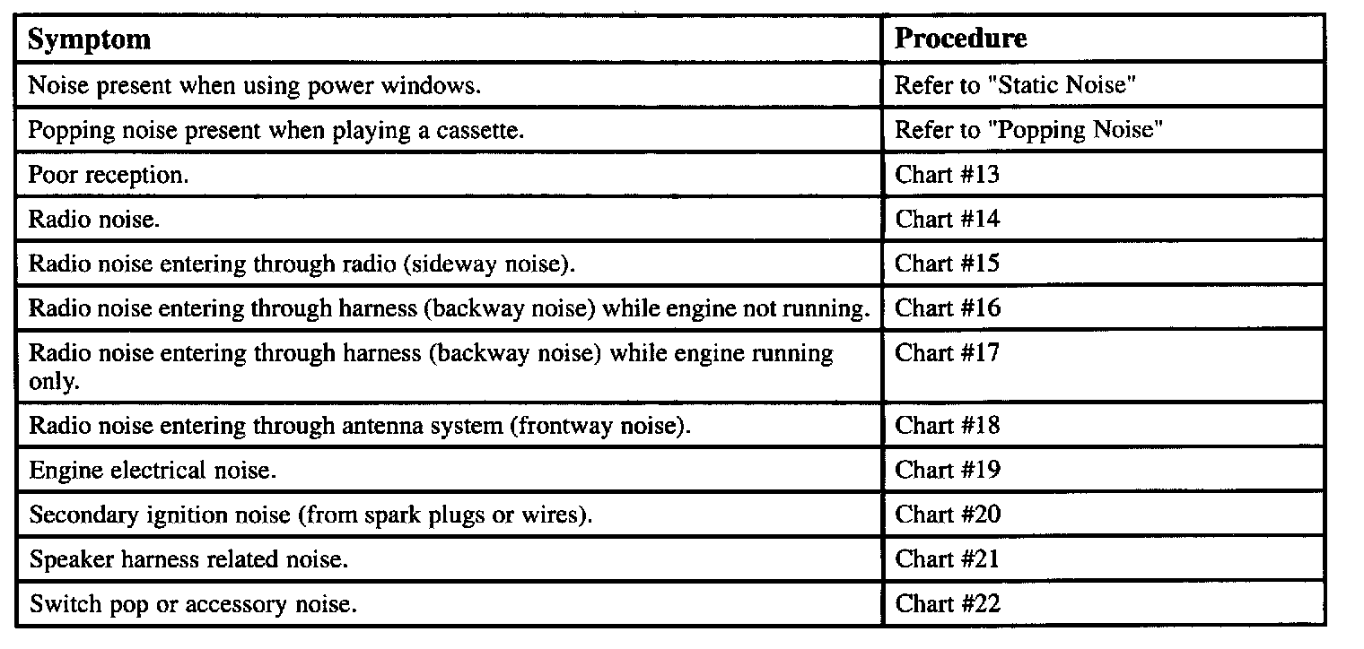 Symptom Table - Noise & Reception Performance Complaints