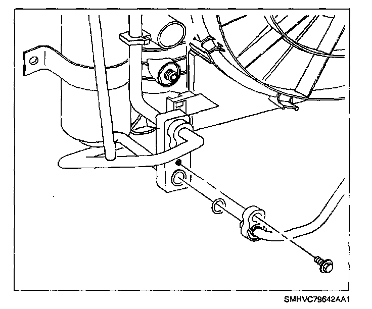 4. Remove discharge line-to-compressor bolt.
