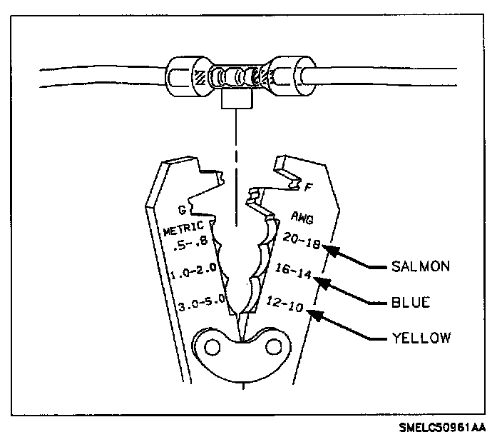 With the low current and voltage wires in the Saturn vehicle, it is best to use approved Packard Electric Crimp and Seal Splice Sleeves (or equivalent).1. Put connector seal (if equipped) on wire and strip approximately 9.5 mm (3/8 in.) of insulation off the wire.