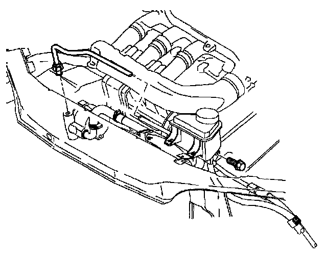 9. Remove power steering pump feed line from reservoir.