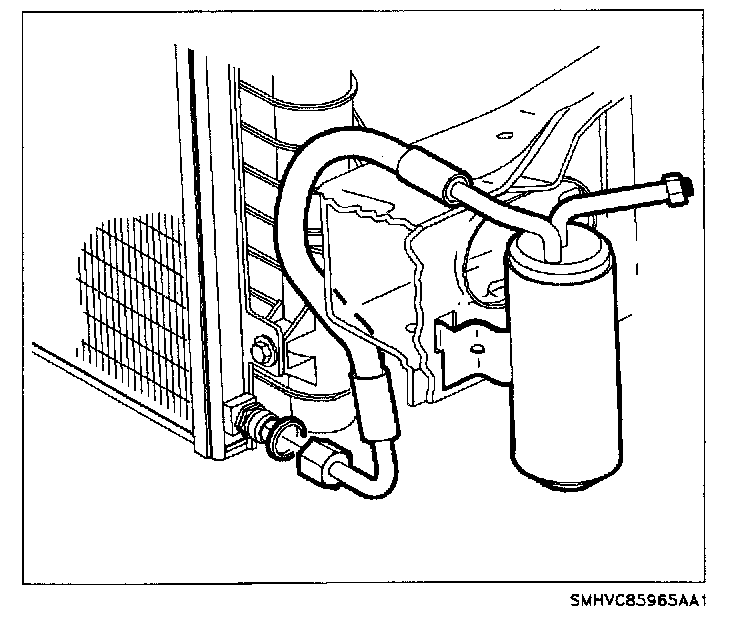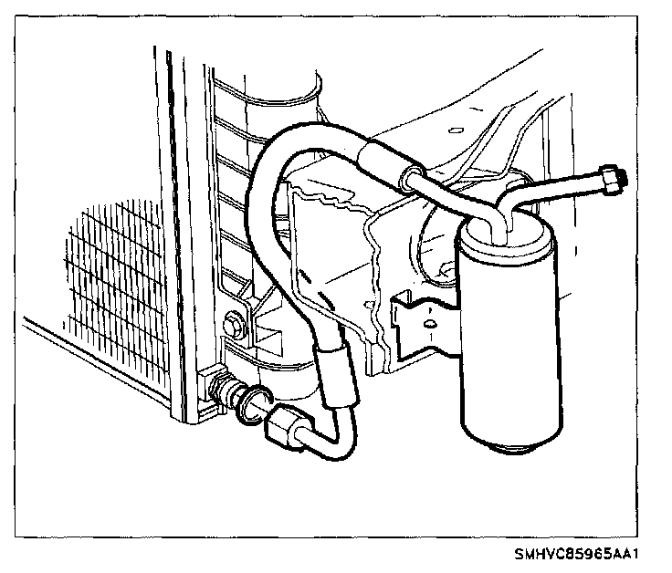 IMPORTANT: Make sure receiver - dehydrator hose is parallel with the condenser after tightening the fitting. This will provide hose clearance to the body and frame, avoiding potential damage to the hose.