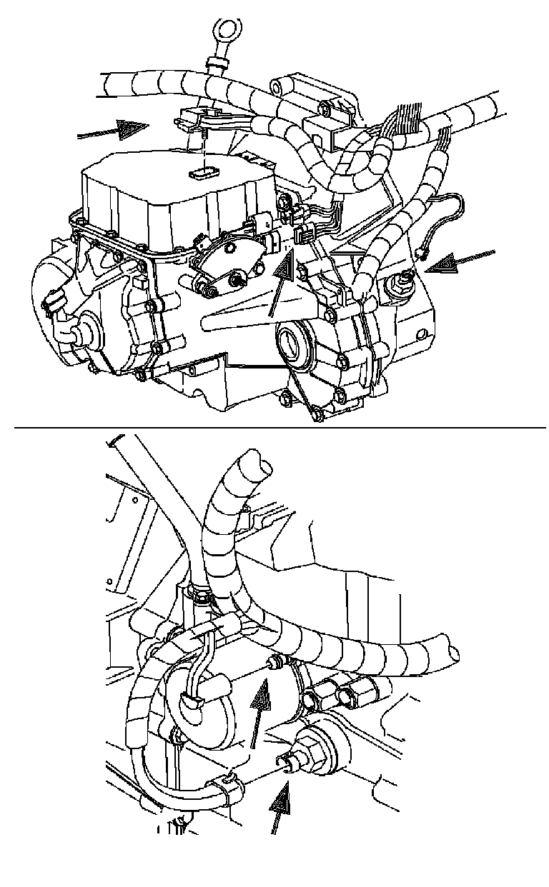 Important: The transaxle electrical connectors and shift cables can also be removed after the vehicle is on a hoist and the left-hand side splash shield is removed.