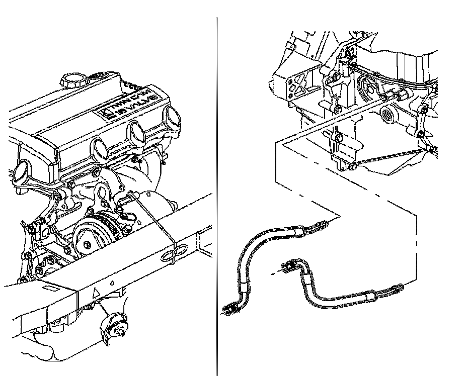 ^ Ground connectors, 2, located at transaxle attachment studs at rear side of cylinder block.