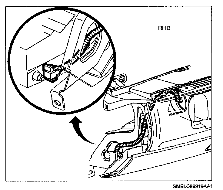 9. For RHD domestic, route harness through retainer assembly and clip electrical connector to retainer assembly.
