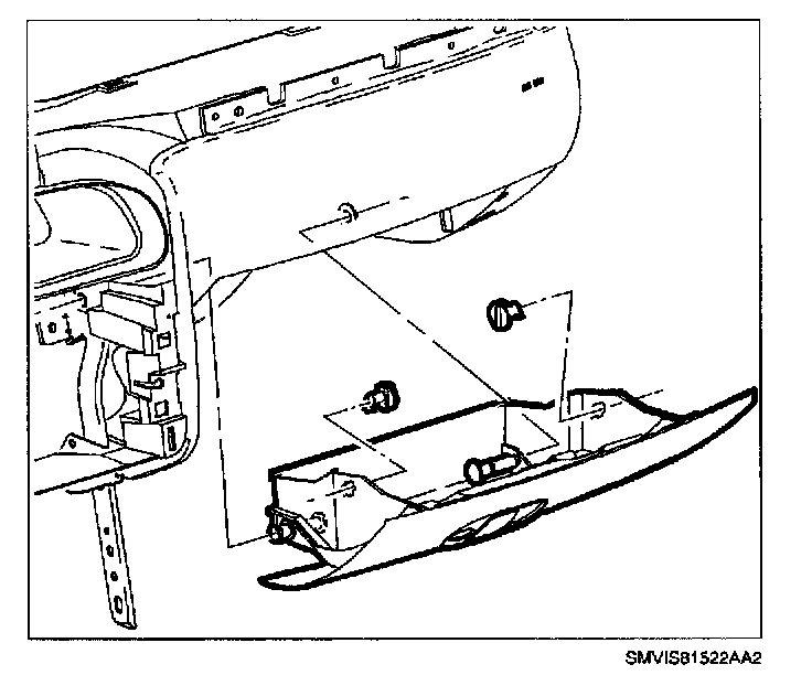 16.2 Install I/P compartment door pins into instrument panel retainer assembly.