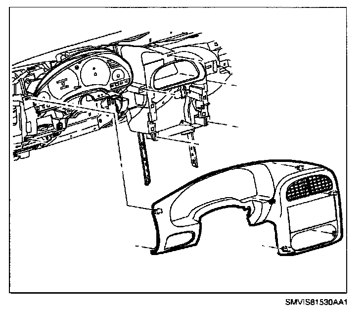 NOTE: Be careful not to damage VIN plate when removing or replacing I/P upper trim panel.