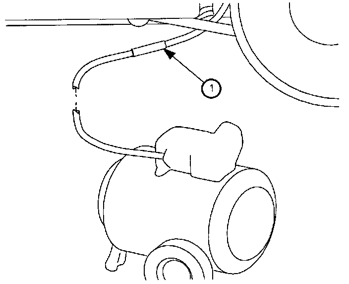 6. Install 5/16" x 1/4" quick connect (1) adapter from Fuel Flow/Pressure Adapter SA9127E-7 into fuel feed line, connect suitable drain hose to other end of adapter, and connect drain hose to certified fuel handling cart.