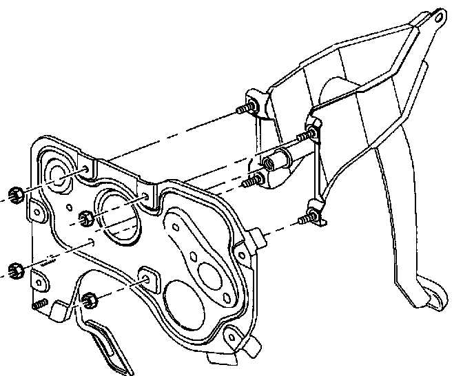 9. Remove pedal bracket fasteners located under hood around brake booster.