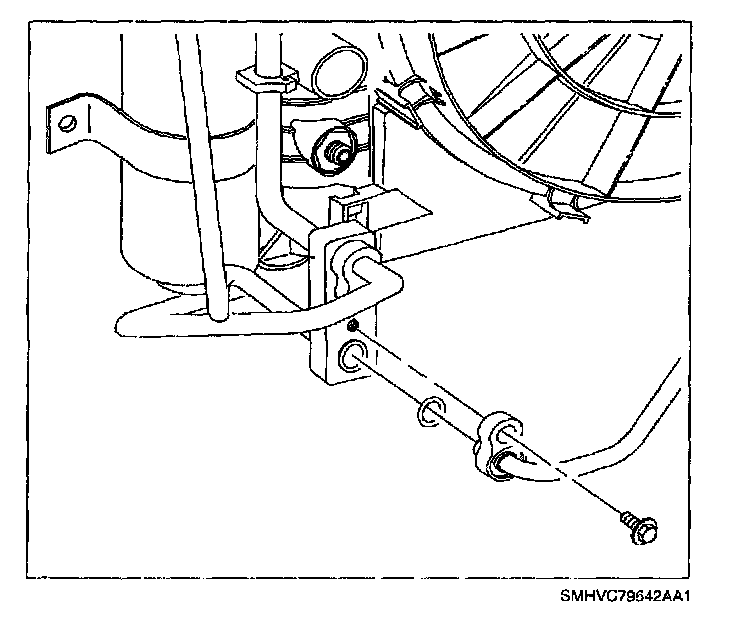 8. Remove discharge line-to-condenser block bolt and remove discharge line from block.