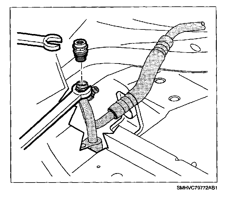 2. Using a back-up wrench to support service port base, use second wrench to remove valve assembly.