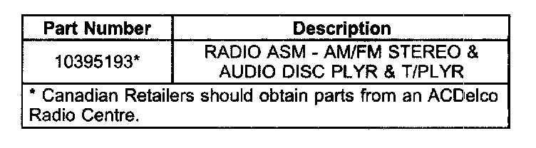 Install new radio with the correct theft deterrent software, P/N 10395193.