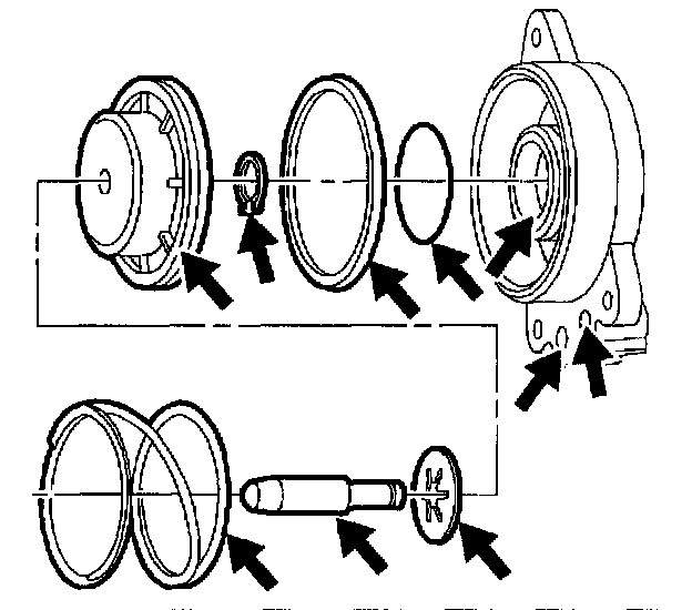 5. Discard servo piston seals. Do not reuse servo piston seals.