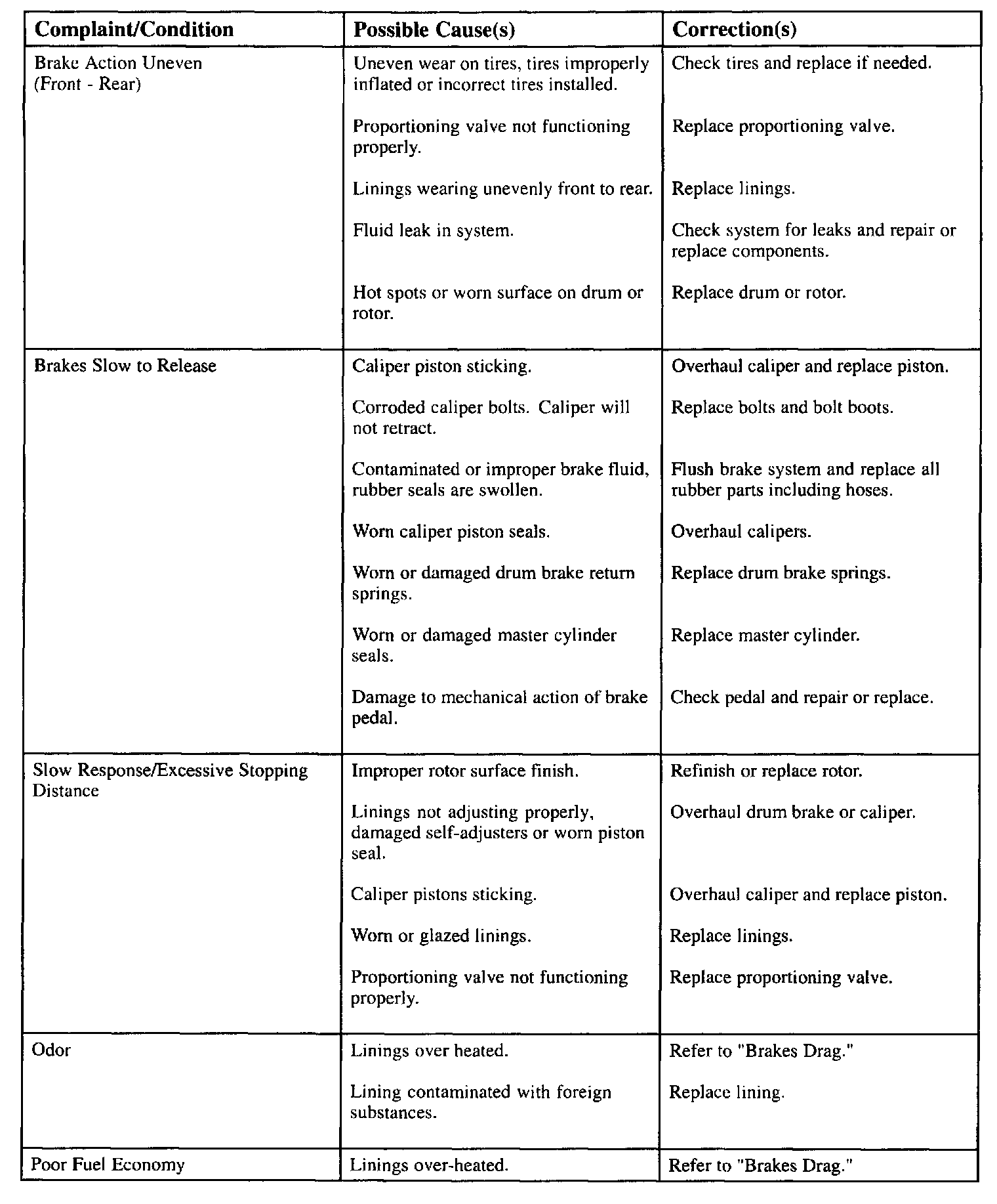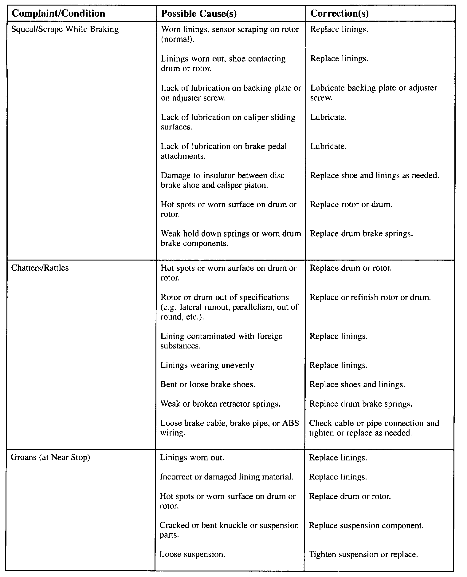 CAUSE/COMPLAINT CHARTS