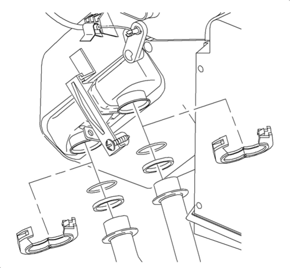 14. Remove the heater core pipe to heater core clamps. The clamps may need to be rotated to gain access to the clamp retaining tab.