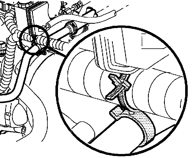 11. Install the hose clip to the two power steering lines.