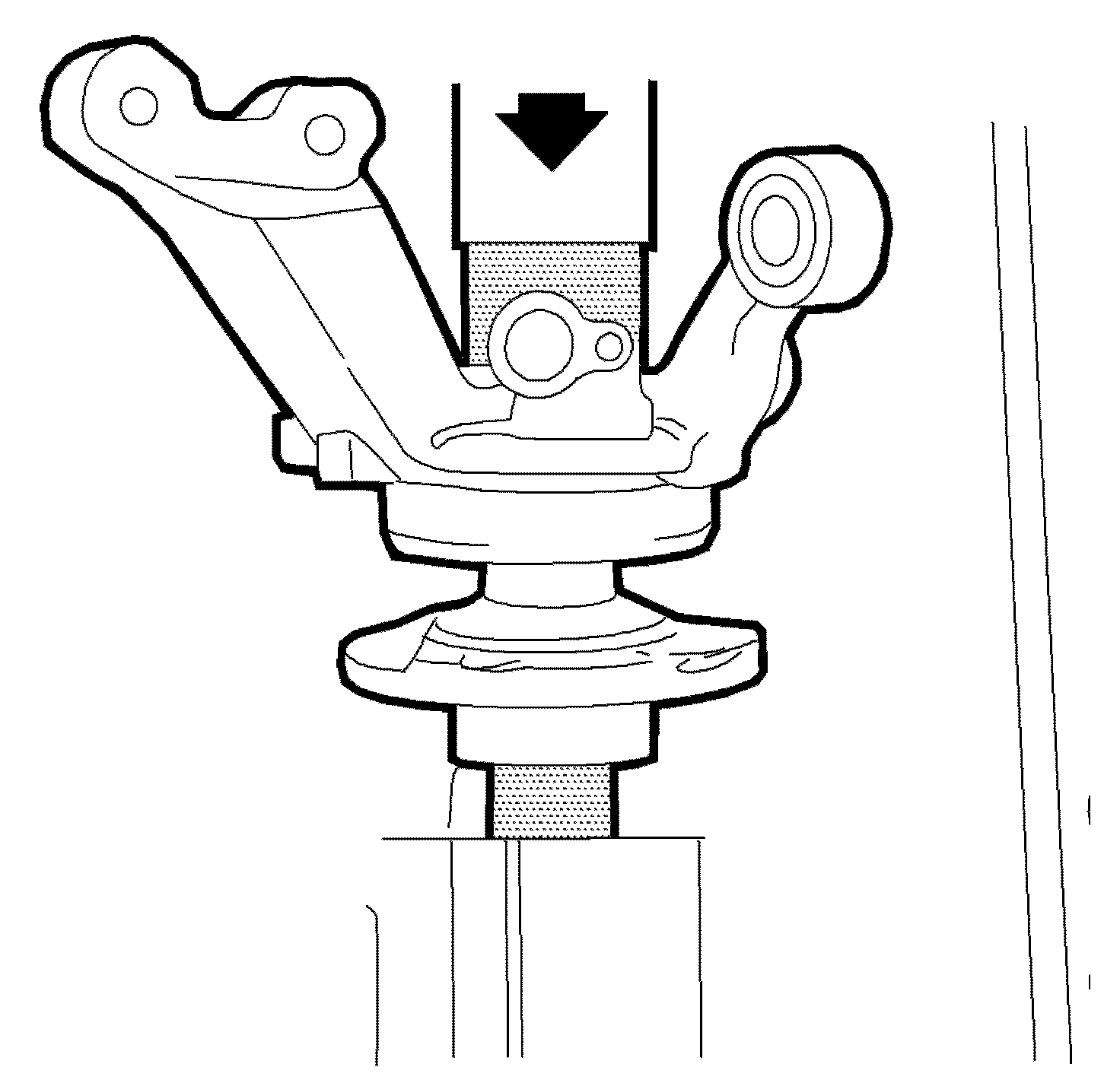 1. Press in the new bearing as shown in the illustration until seated using the J 44563 or equivalent.