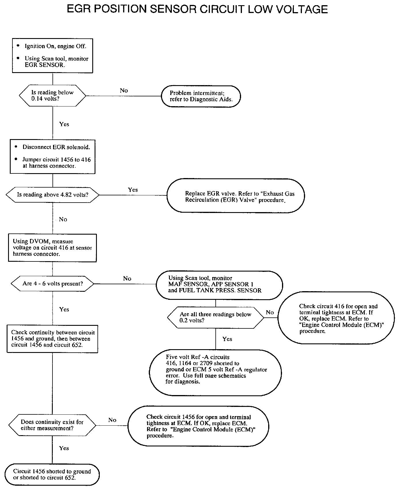 To locate an intermittent problem, use Scan tool to monitor EGR SENSOR voltage with ignition On, engine Off.