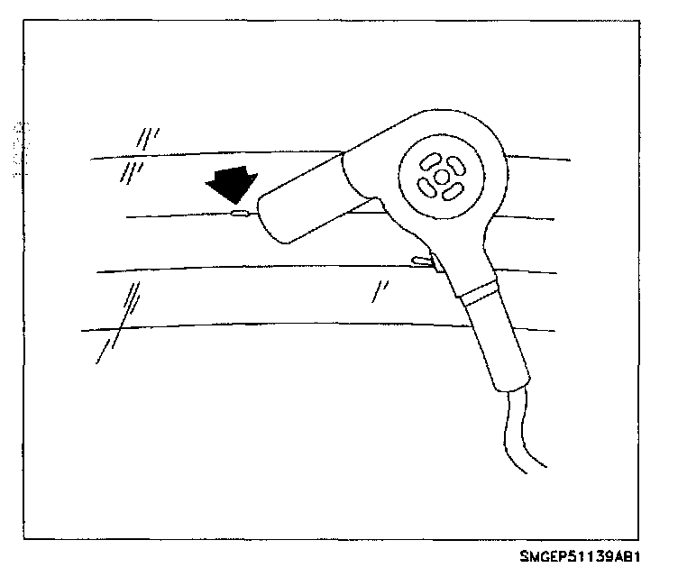 NOTE: The grid line repair material must be cured with heat. To avoid heat damage to interior trim, protect the trim near the repair area where heat is to be applied.