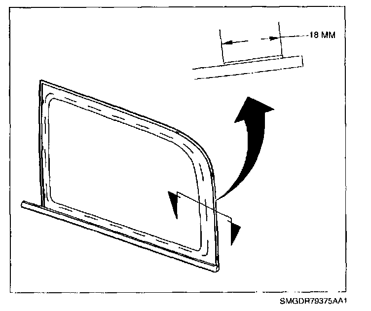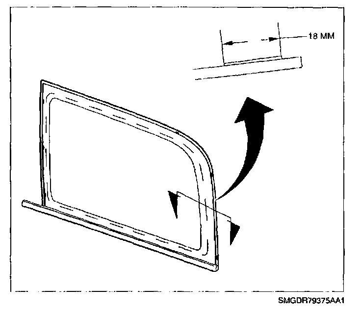 NOTE: Until the new urethane has cured, air pressure from a closing door may cause the quarter glass to move. To prevent this, lower the opposite side door window a minimum of 76 mm (3 in.) before closing the door.