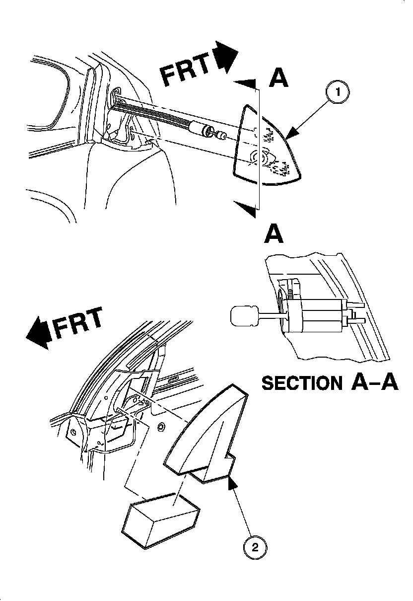 1. Remove mirror trim panel (1) by pulling outward.