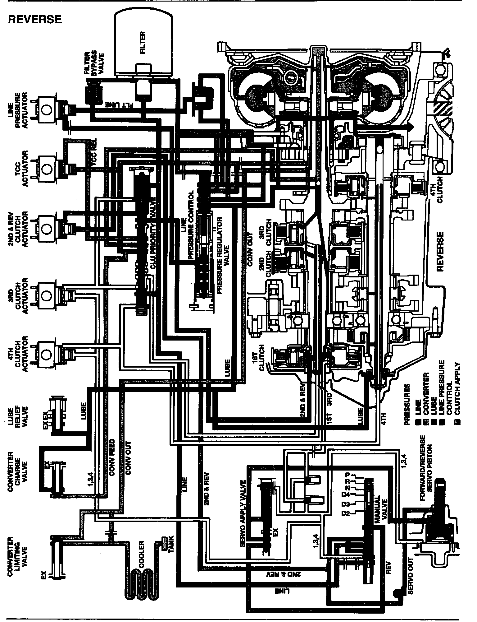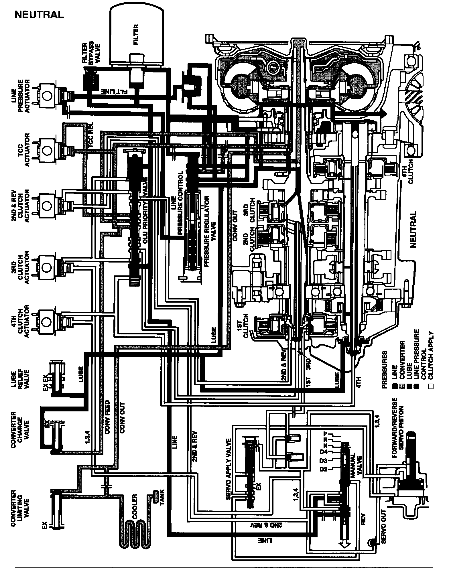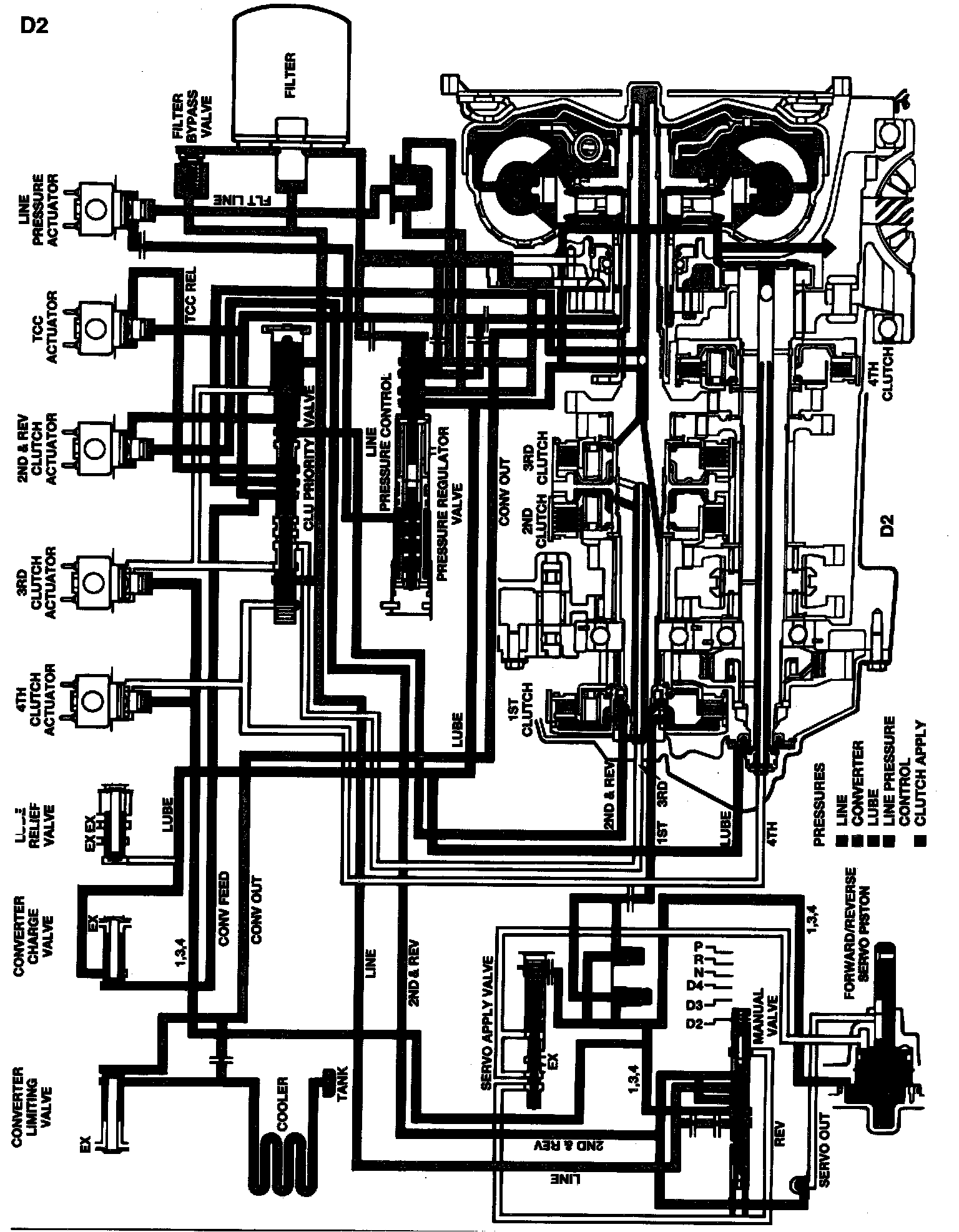 HYDRAULIC SCHEMATICSThe following are hydraulic schematics that show the hydraulic operation of automatic transaxles in each of the following ranges: