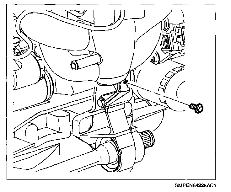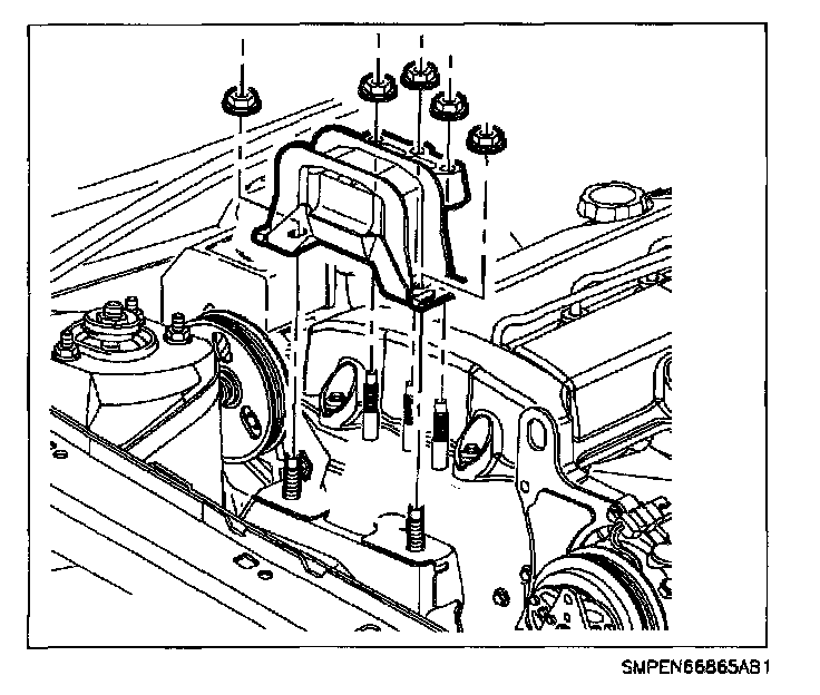 27. Remove transaxle strut-to-midrail bolt.