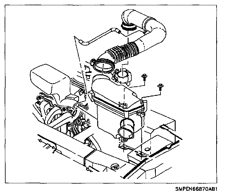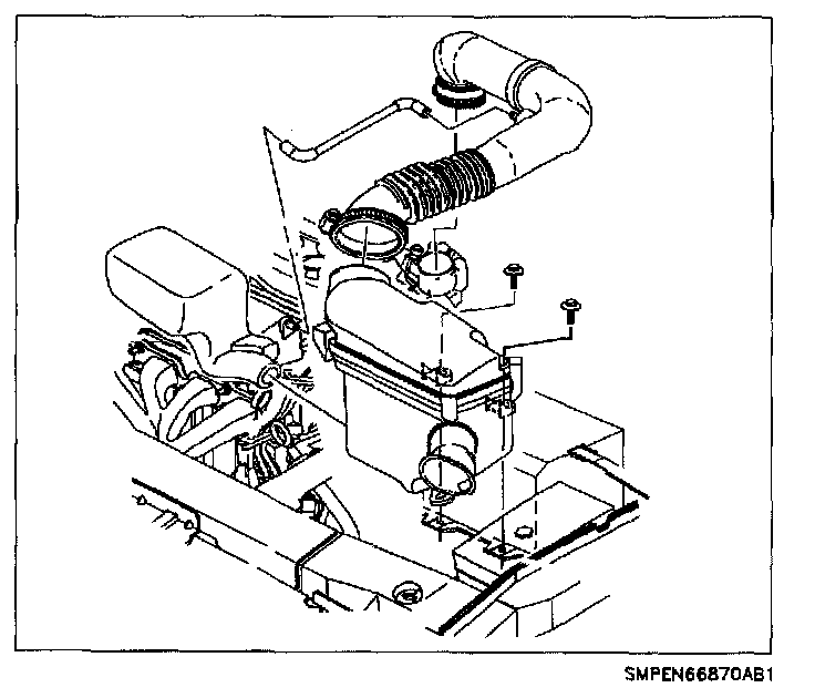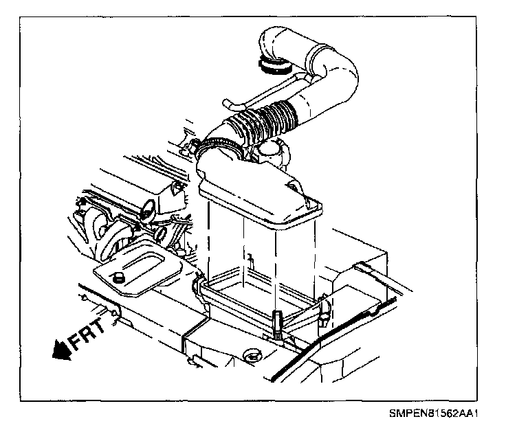 7. Remove air inlet tube and air filter cover, disconnecting fresh air hose at air inlet duct.