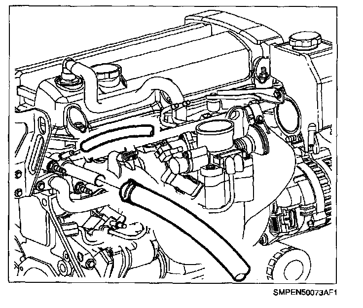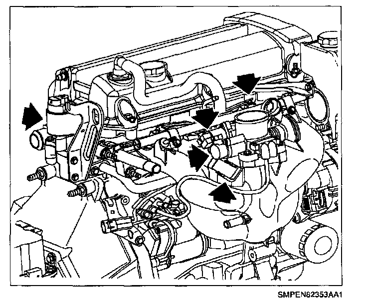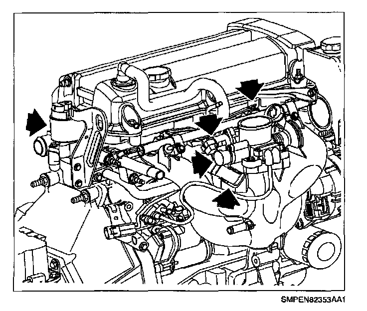 16. Disconnect heater and deaeration hoses at intake manifold outlets.
