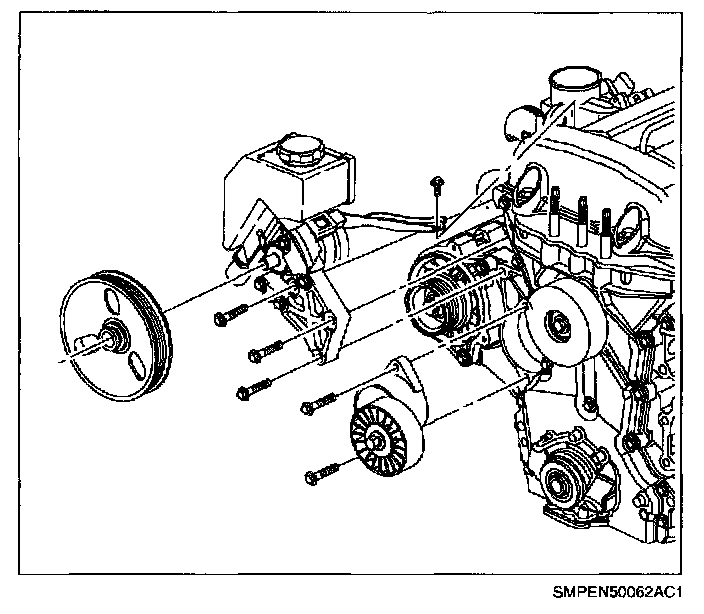 13. Install power steering pump assembly and brackets.