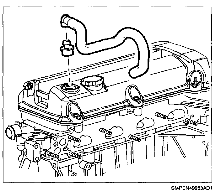 10. Install PCV valve and hose to cam cover.