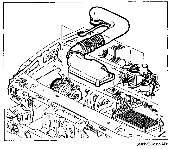 2. Remove air cleaner cover and air induction hose at intake manifold.